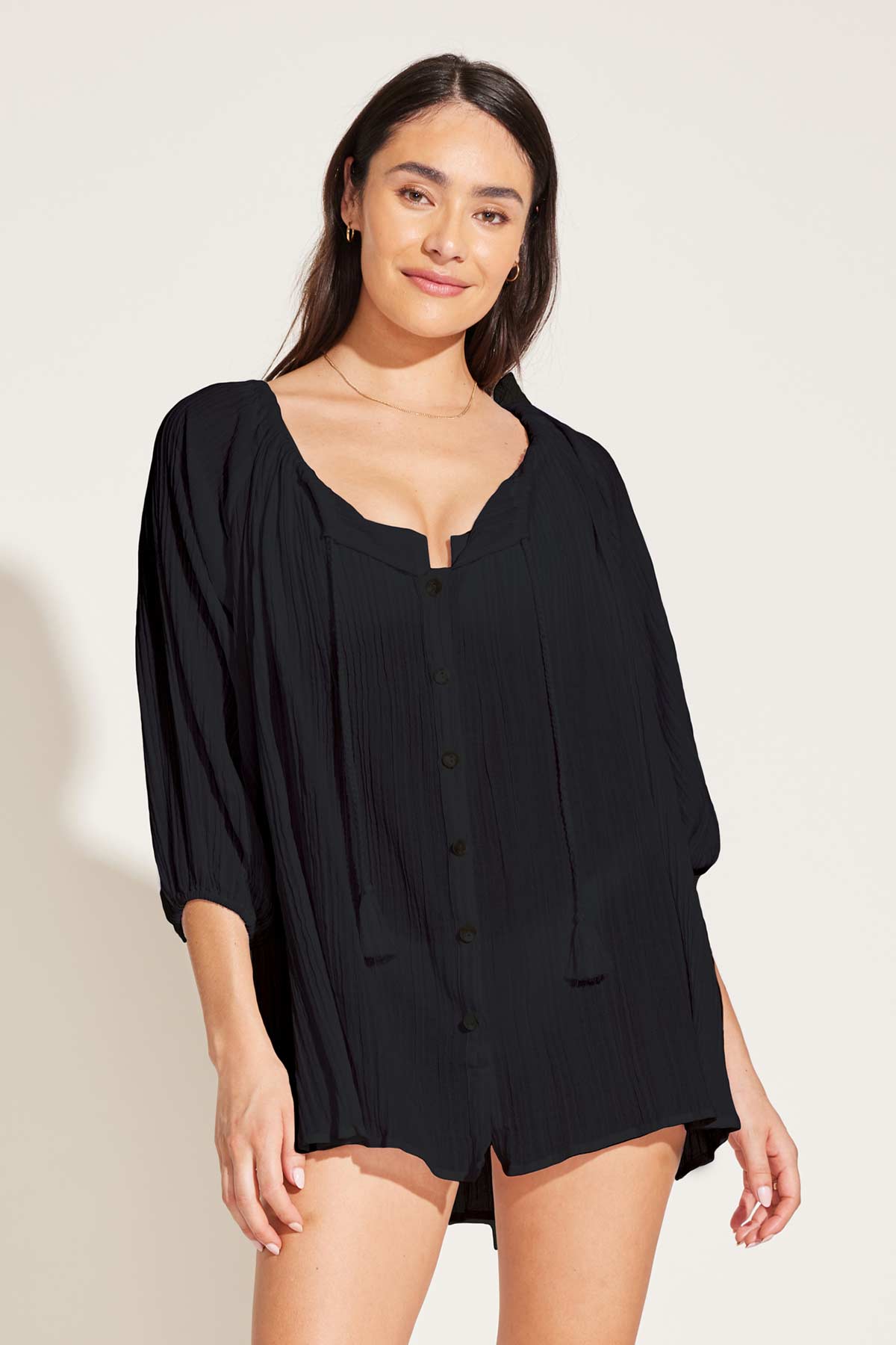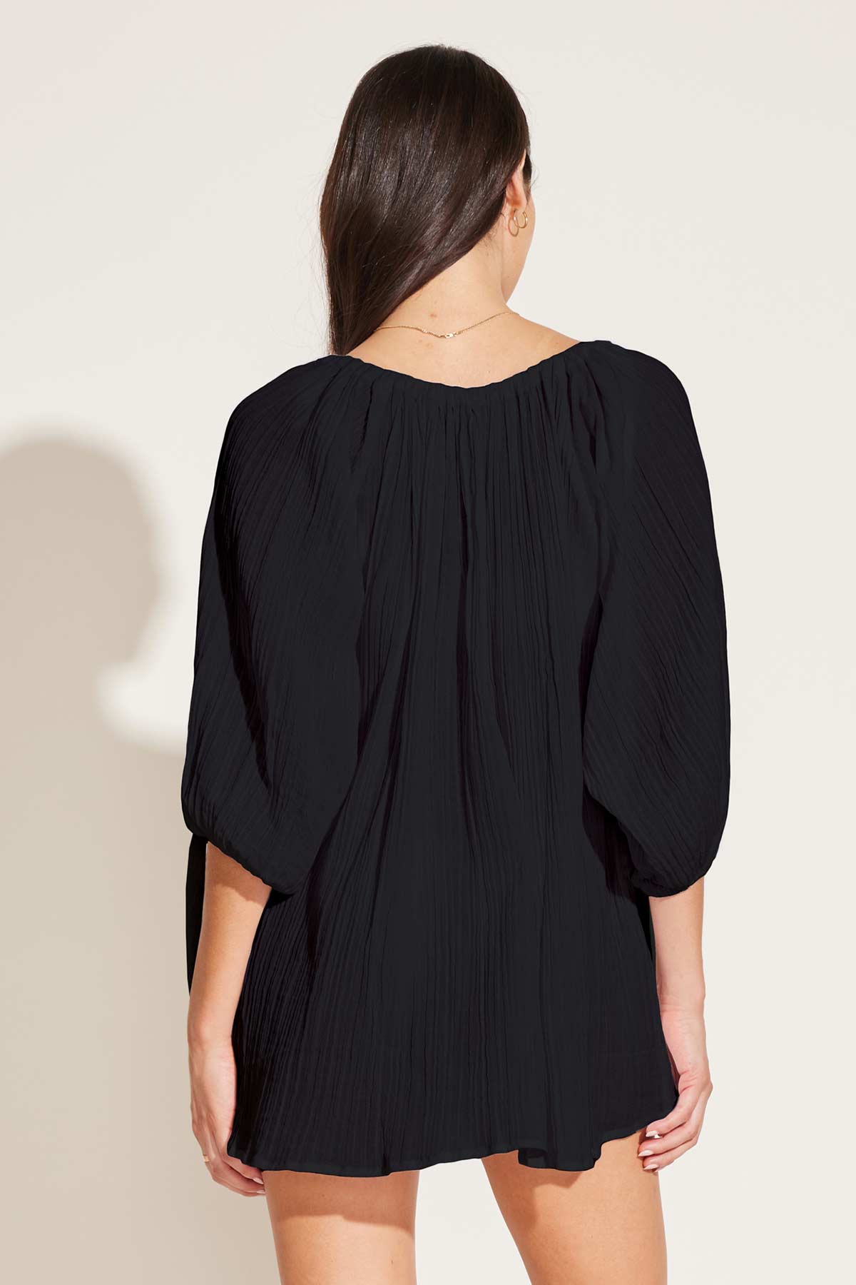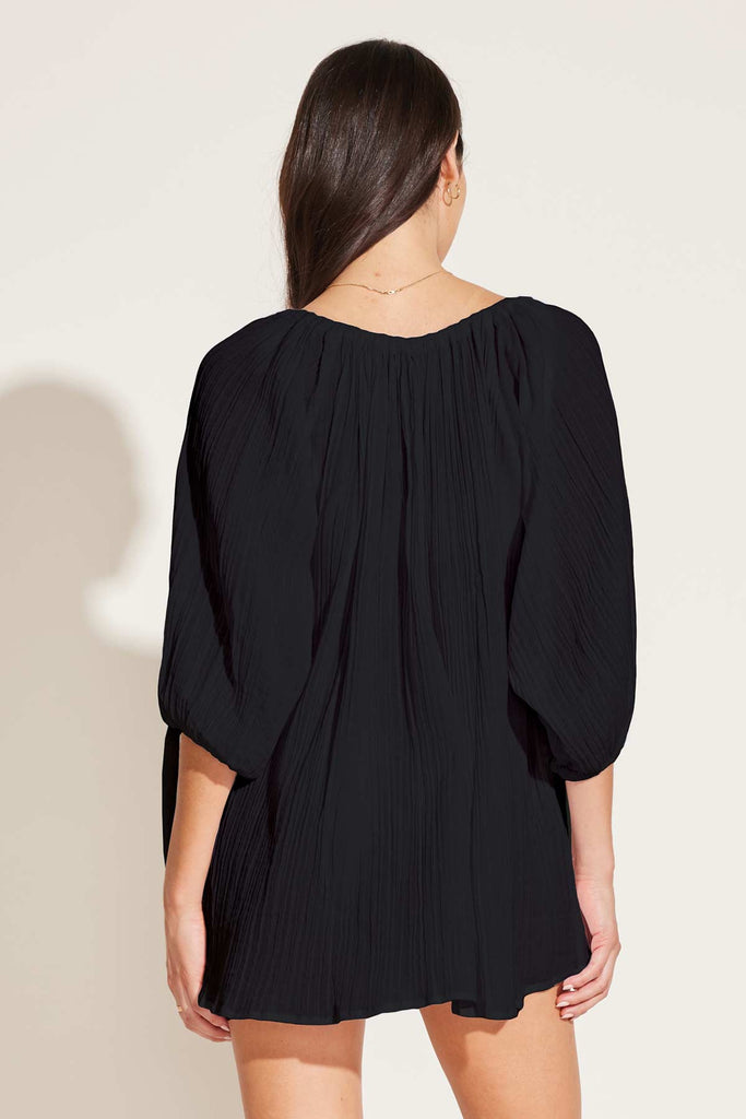 Costa Shirt Dress - Black Crinkle Organic Cotton