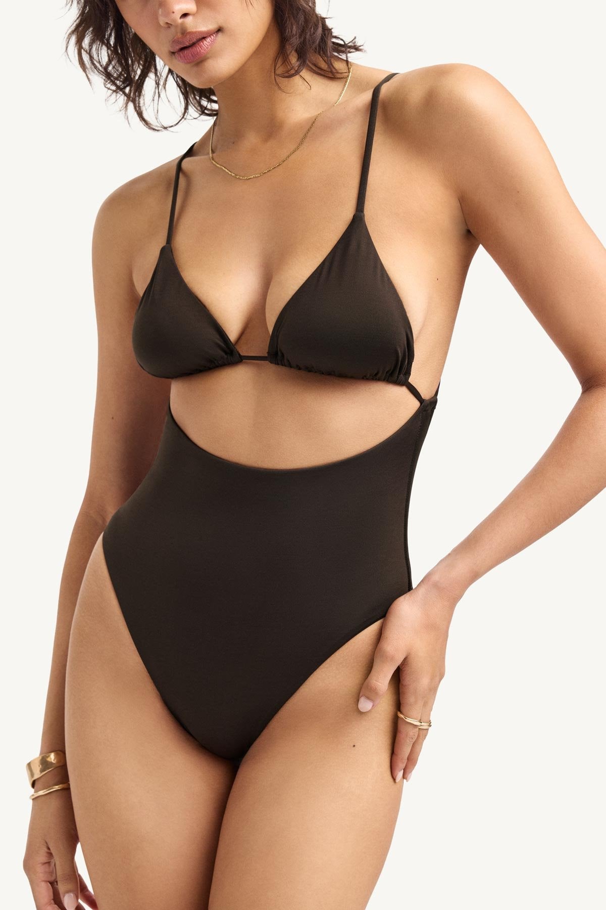 The Gia One Piece takes the beloved fit of our Gia Triangle Top and reimagines it in a sleek, modern silhouette. Featuring over-the-shoulder adjustable straps and a tie-back closure, it offers a customizable fit. Finished with removable cups and cheeky coverage, it’s a fresh update on a favorite style.