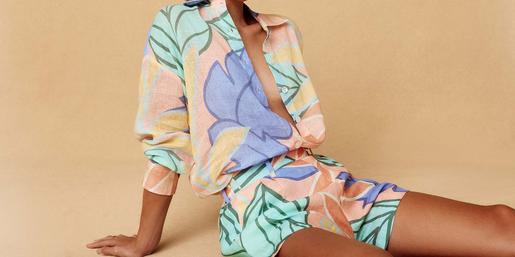 Playa Linen Boyfriend Shirt - Citrus Flower EcoLinen