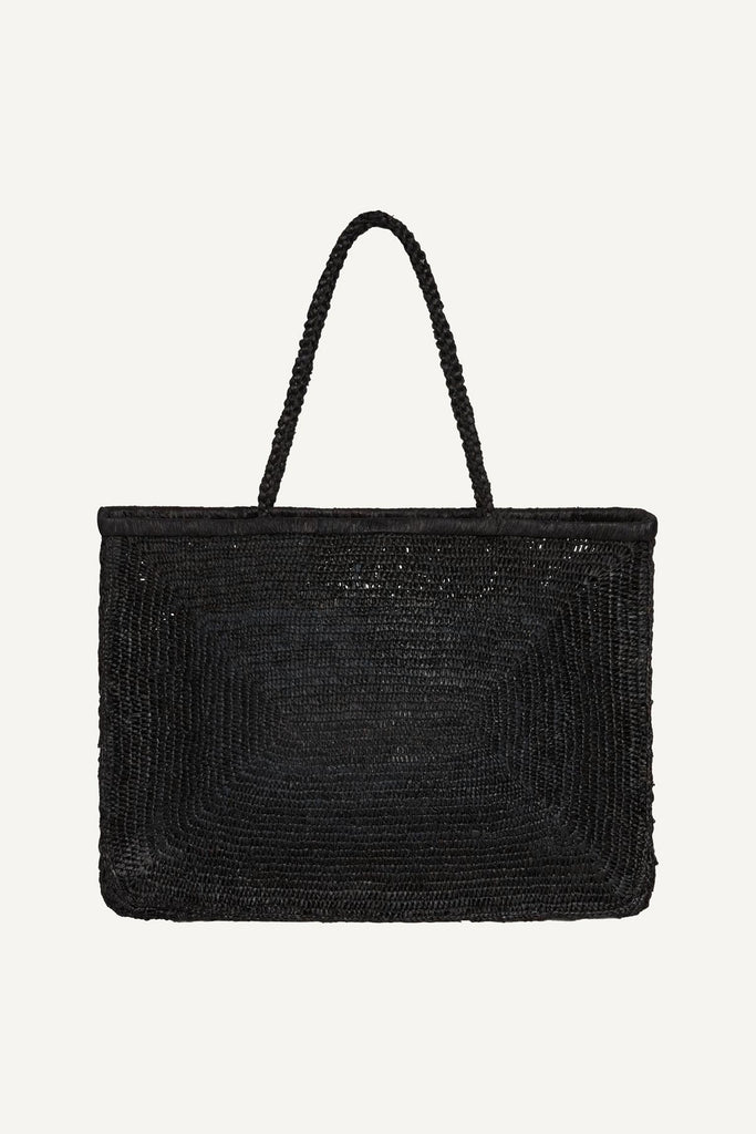 This 100% natural raffia bag is dyed using vegetable dyes. The Black color is created using either black tea or pomegranate, depending on the season.