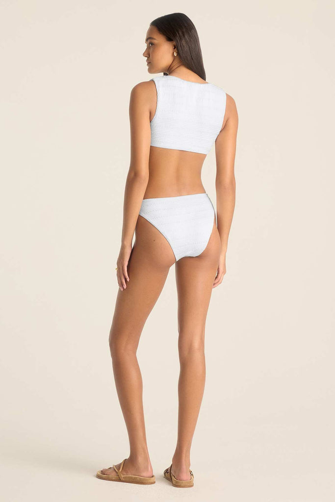 Cali High Leg Full Bottom - White Seersucker Stripe