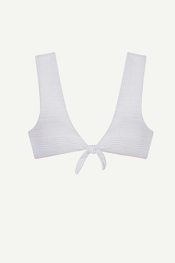 Cassia is the endlessly versatile top to wear from the beach to pre-dinner drinks. A combination bralette and crop top, this front tie bikini is adjustable for your bust size. Features darts at the bust for a seamless shape.