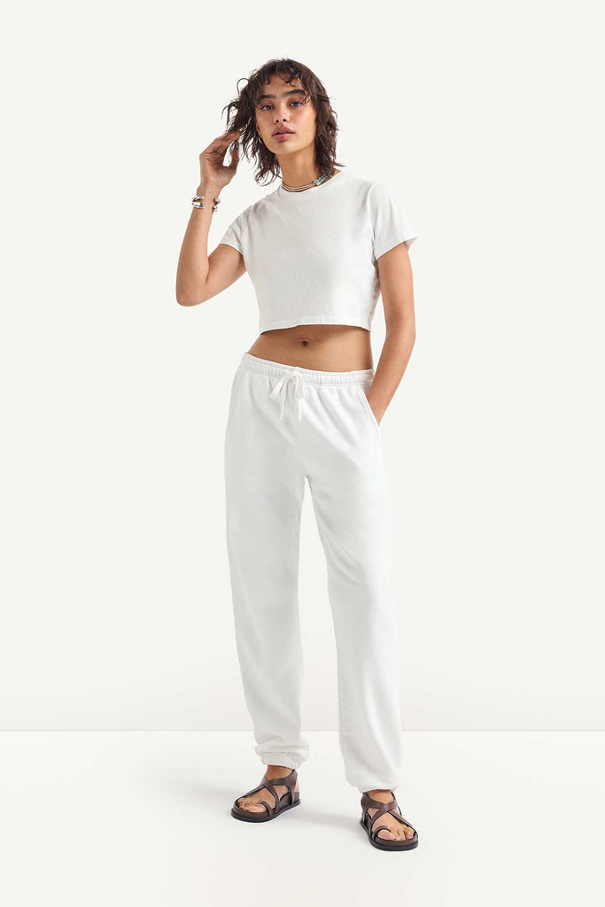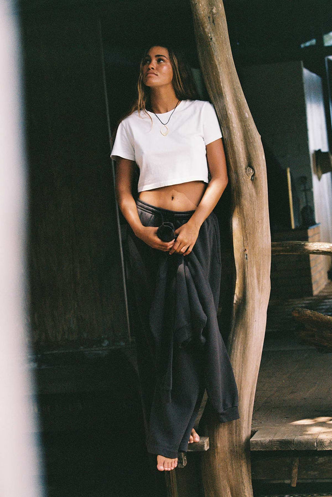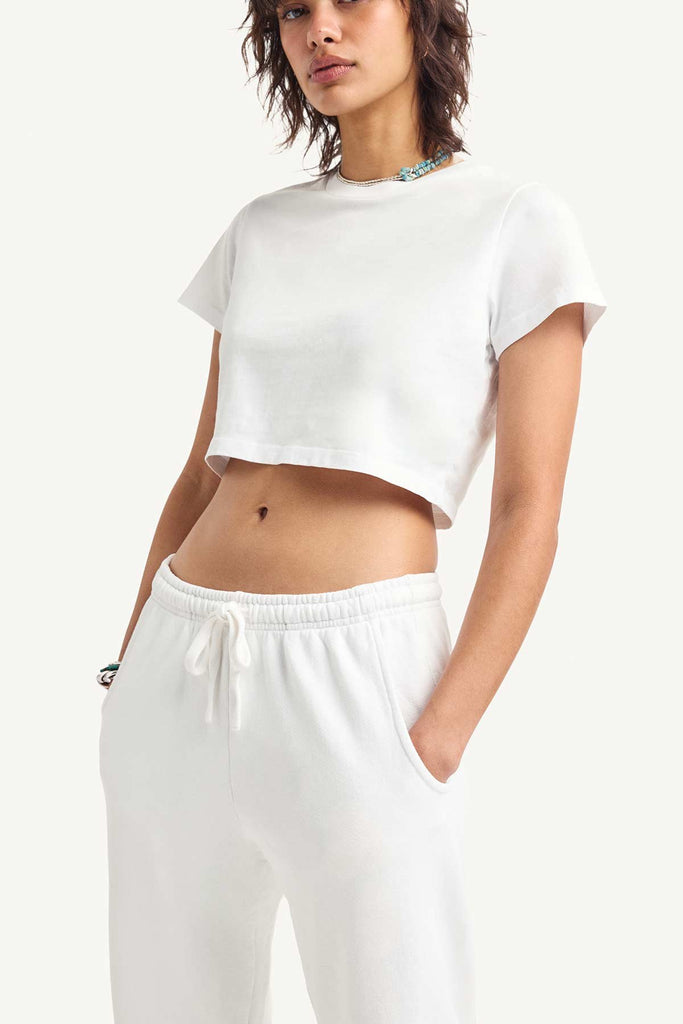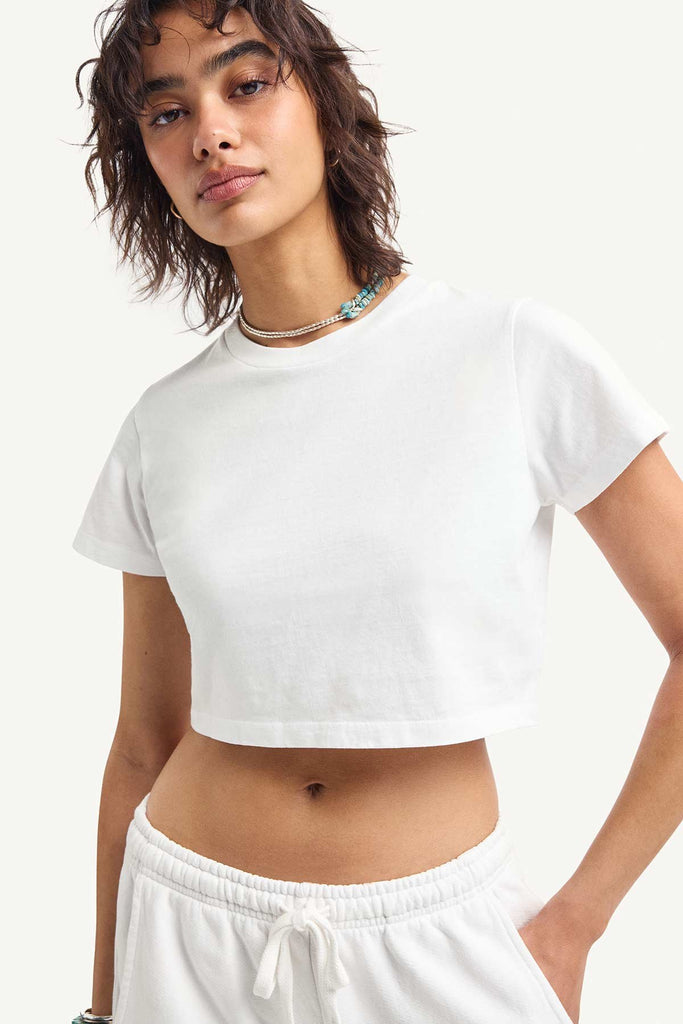 The Coast Fitted Crop Shirt is made from a soft, thick cotton jersey with 50% recycled cotton. Garment-dyed in classic White for a clean, easy-to-style look. Simple, flattering, and effortless.