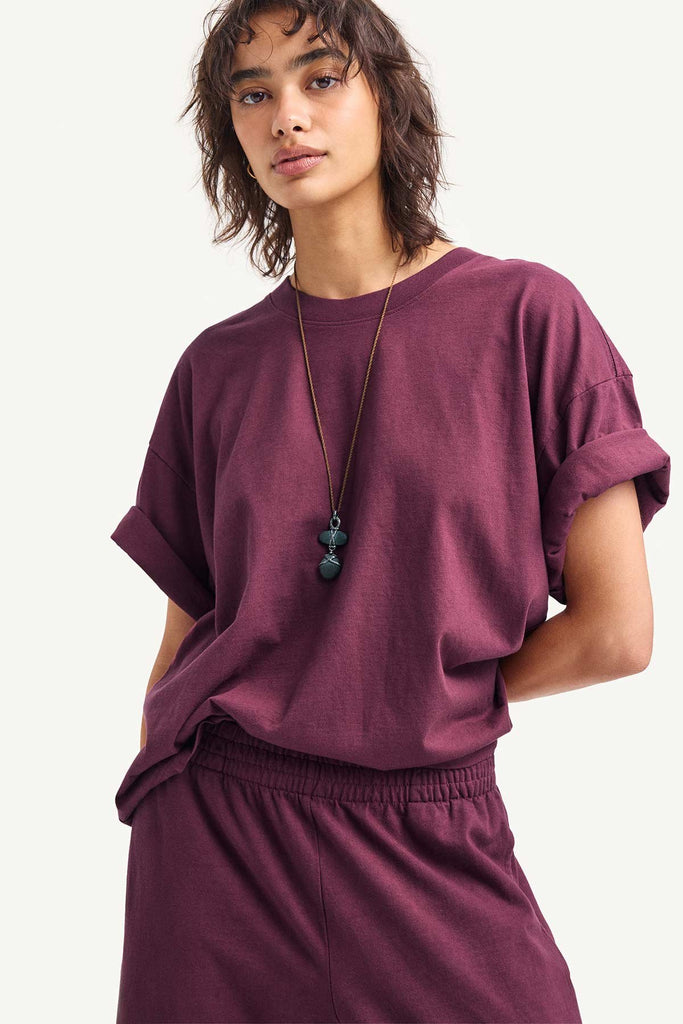 Your favorite tee inspired by the one you borrow. Made from soft, thick cotton jersey with 50% recycled cotton, the Coast Oversized Boyfriend Tee is garment-dyed in a rich Crushed Berry for a soft, lived-in texture. With its roomy fit and effortless style, its perfect for laid-back days and layering.