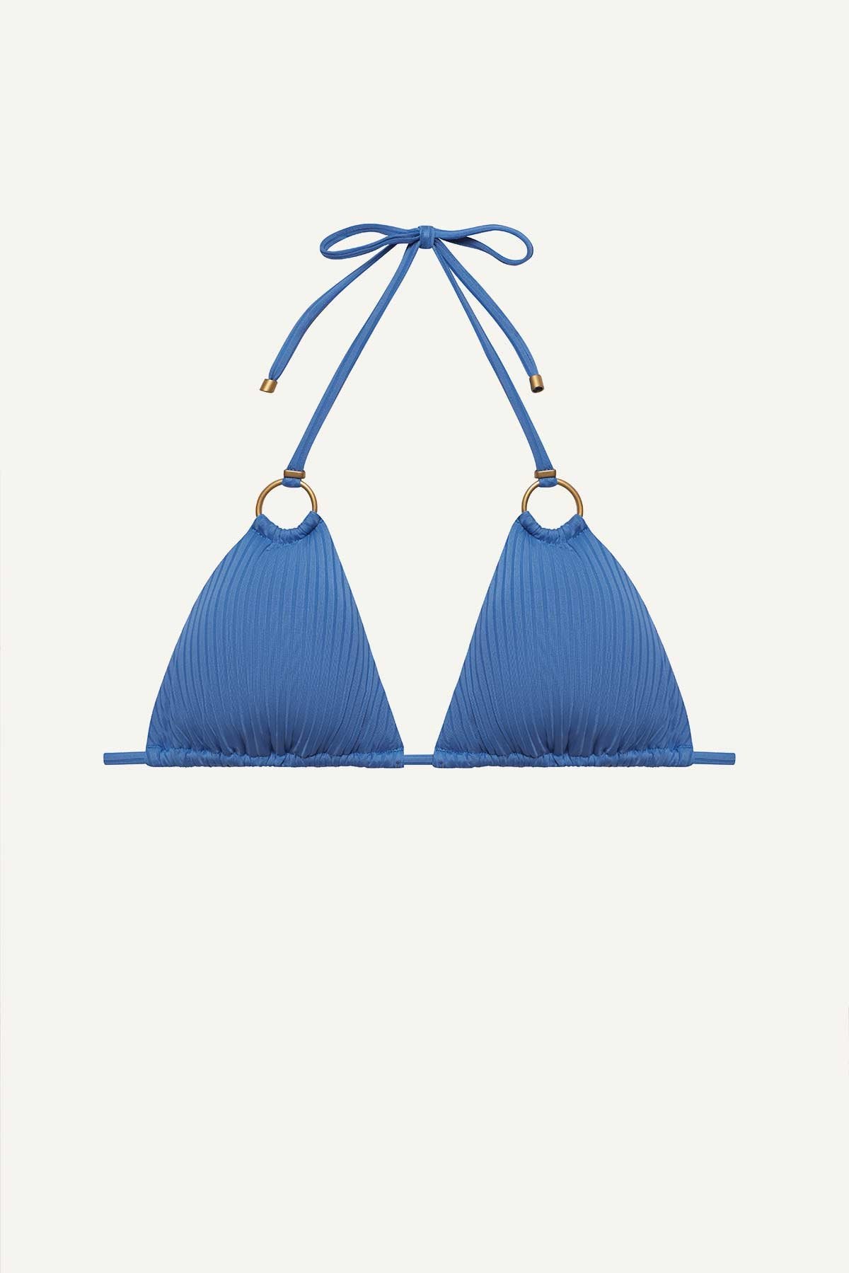 It's in the details. This triangle top features matte gold ring hardware, removable cups, and a tad more coverage than our Gia Triangle Top. The rings are uniquely designed to not rust or heat up in the sun.