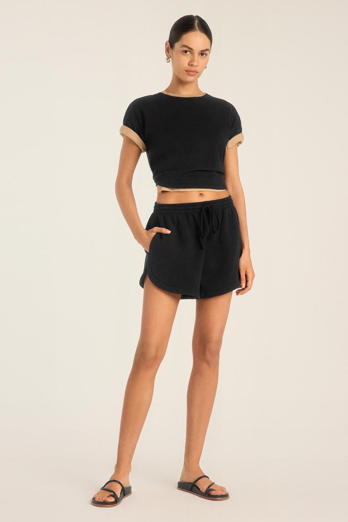 This essential, mid-rise short is the perfect versatile style to slip on over a one-piece before or after a swim, or pair effortlessly with a tee. Features elastic at the waist, a drawstring cord and side pockets.