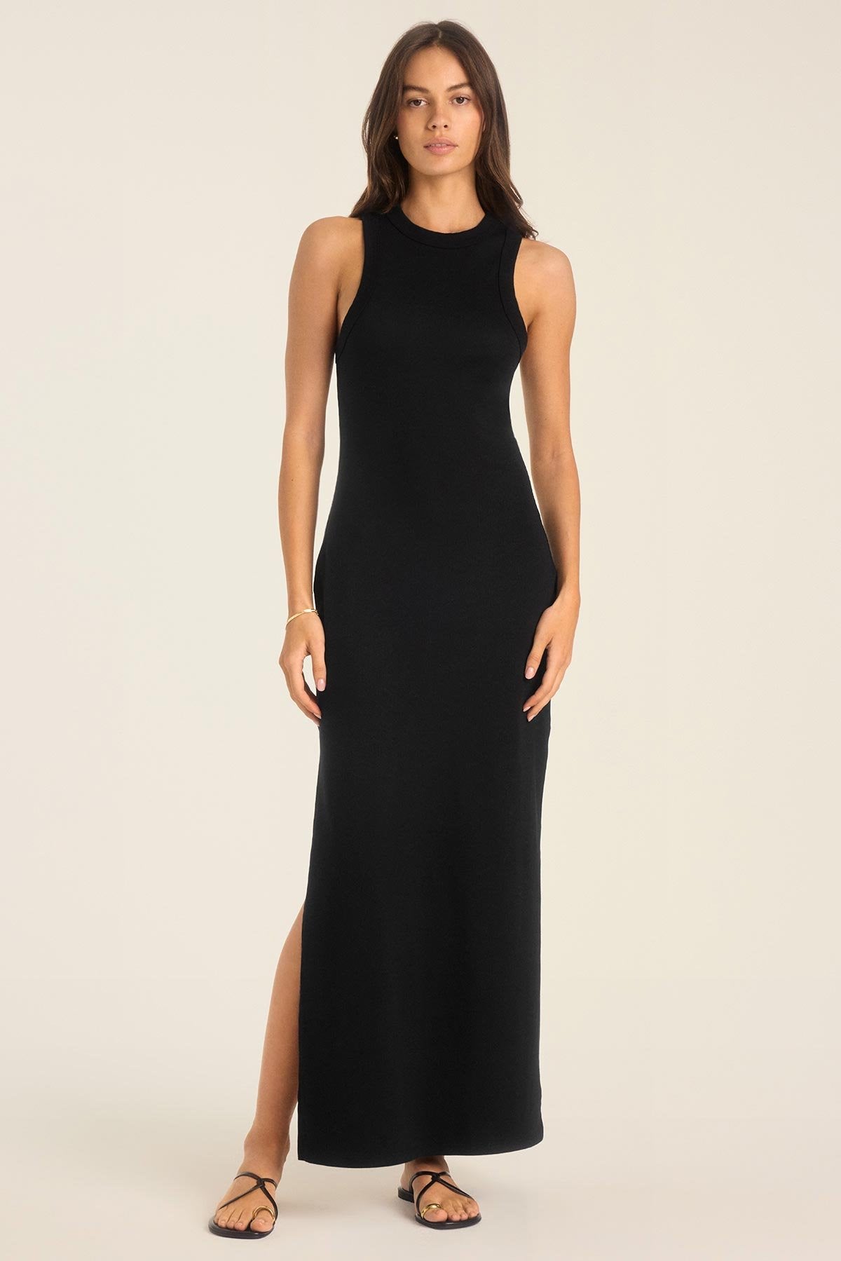 Daybreak Essential Midi Dress - Black Cotton Rib