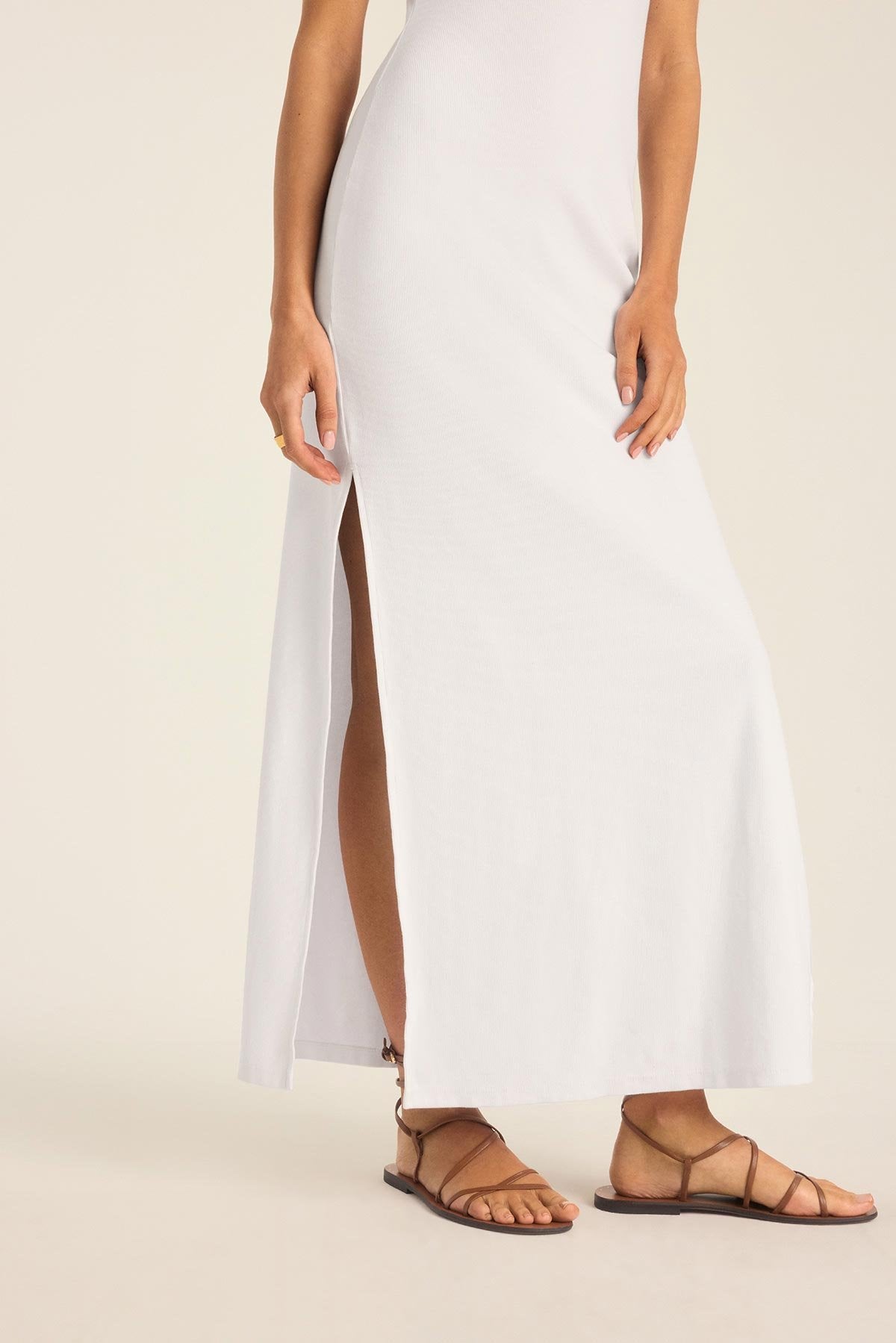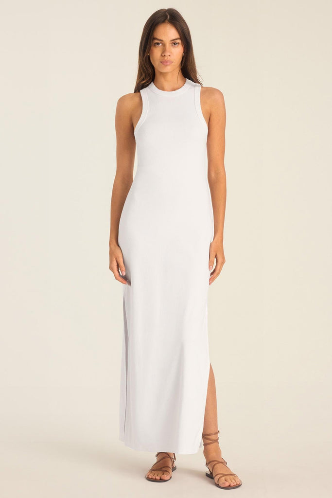 Daybreak Essential Midi Dress - White Cotton Rib