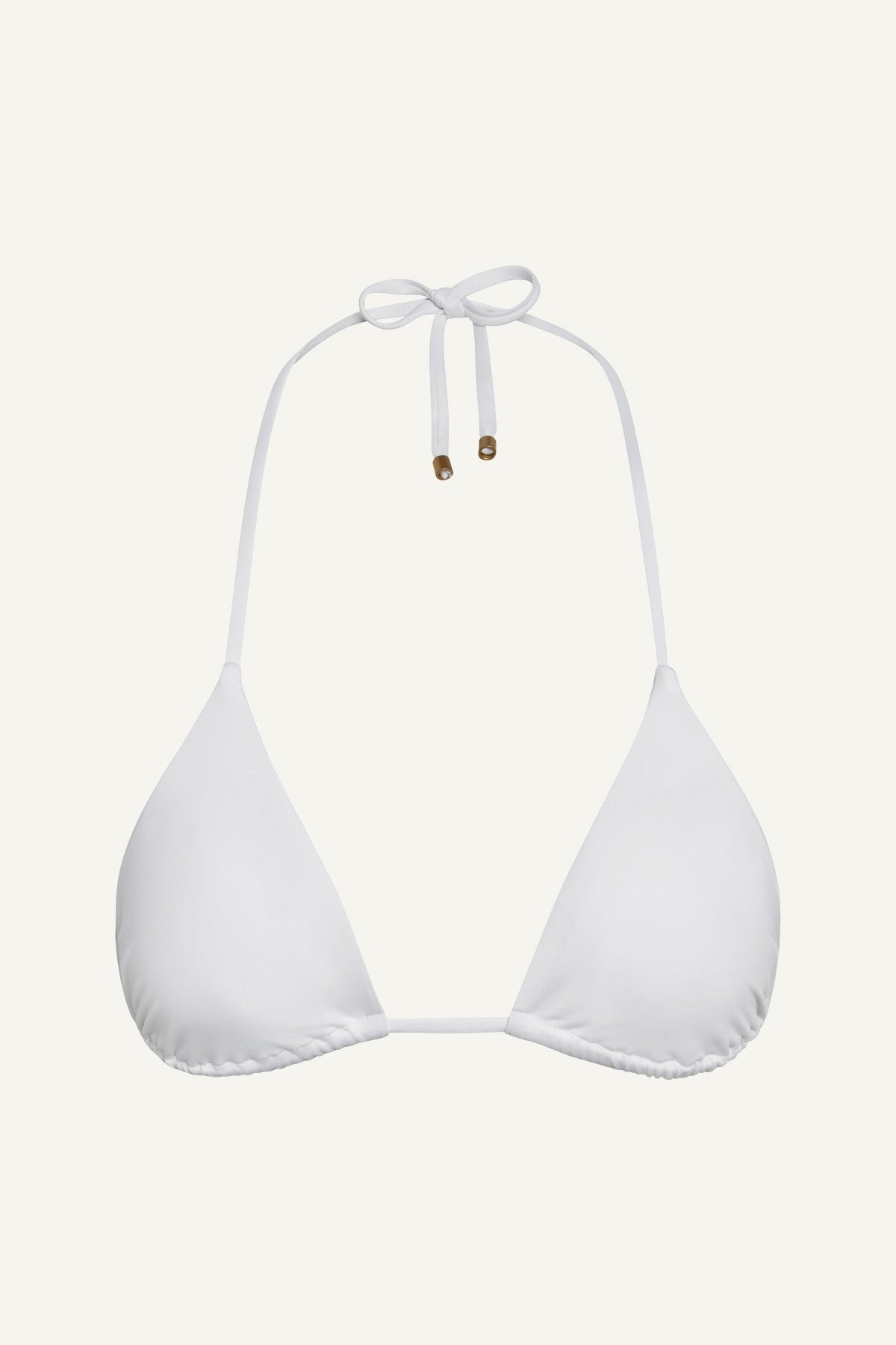 Our best-selling Gia Triangle Top is a timeless essential for sun seekers. Designed with minimal coverage, this top features adjustable ties around the neck and back for a customizable fit. Removable cups offer optional shaping and support, making it easy to wear your way perfect for poolside or beach days.