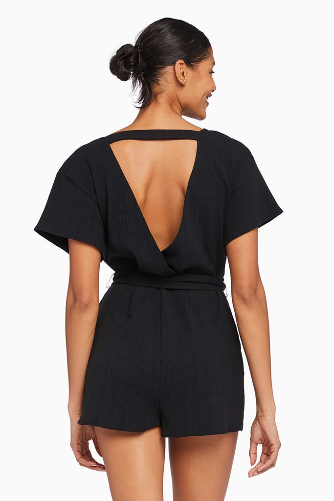 Logan Organic Rib Romper - Black Organic Rib