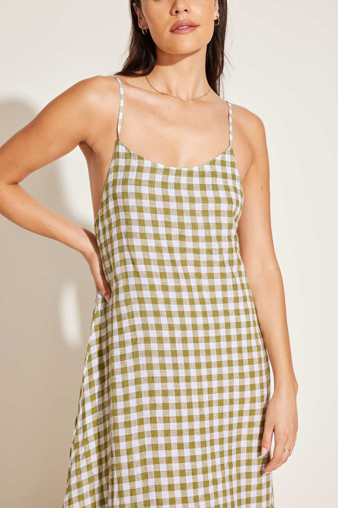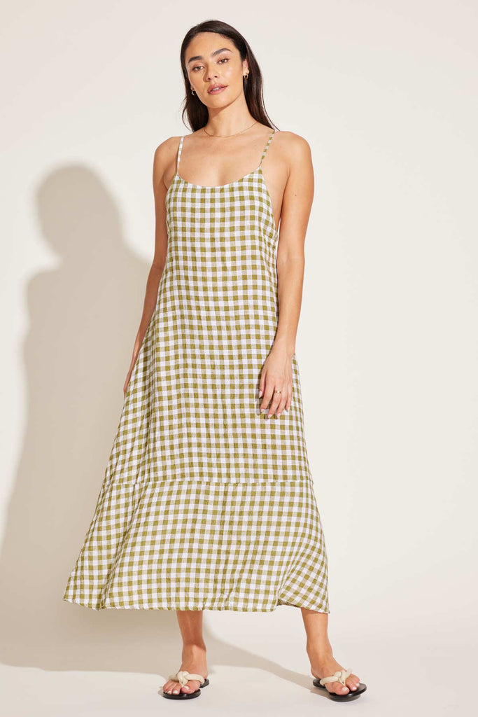 Mari Maxi Dress - Avocado Gingham EcoLinen