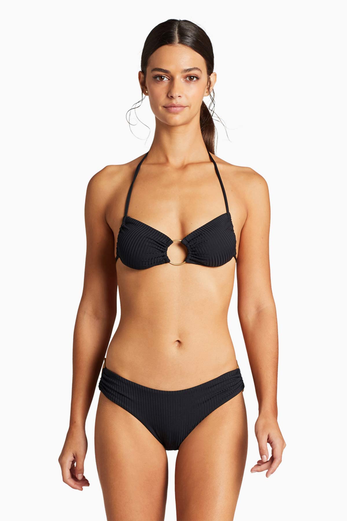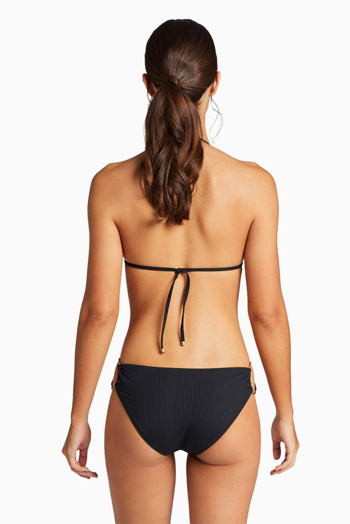 Sexy and classy. An Italian matte gold alloy ring adds some shine right at hip to this full coverage bottom. Specially designed to not rust, crack, or heat up in the sun.