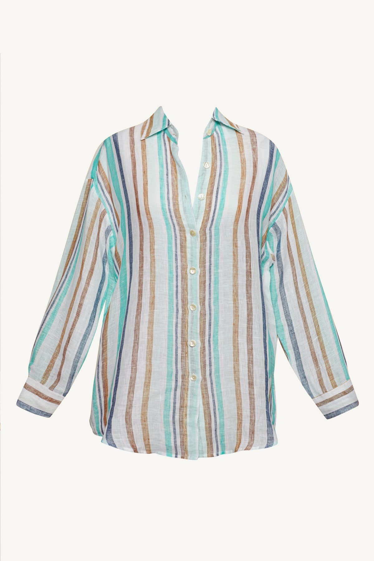 Playa Linen Boyfriend Shirt - Tidal Stripe EcoLinen