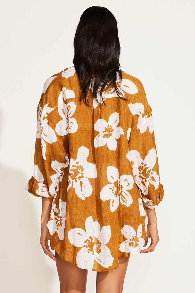 Playa Linen Boyfriend Shirt - Saffron Bloom EcoLinen