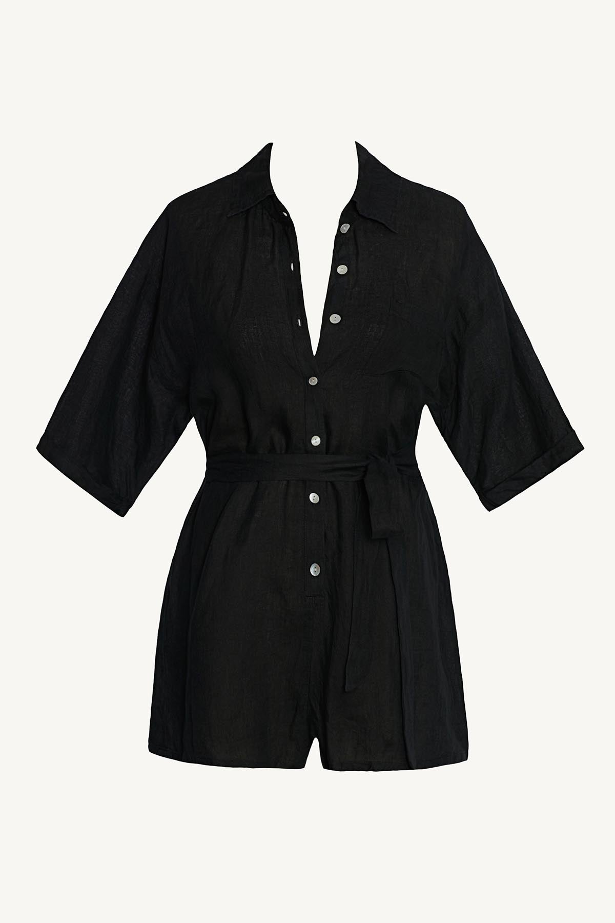 Playa Romper - Black EcoLinen