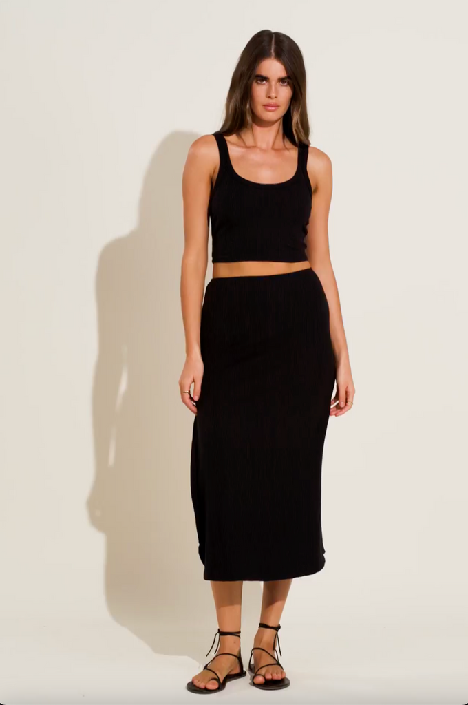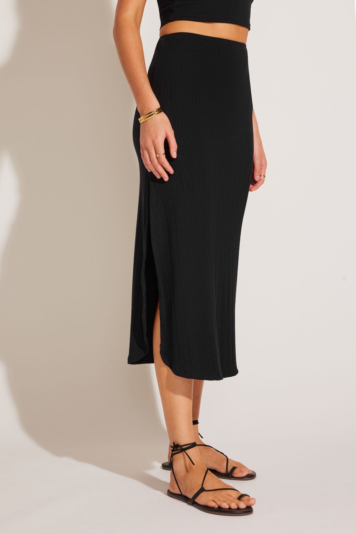 A soft-to-the-touch, organic cotton skirt, Thalia is an effortless ribbed knit pencil skirt for dressing up or down.