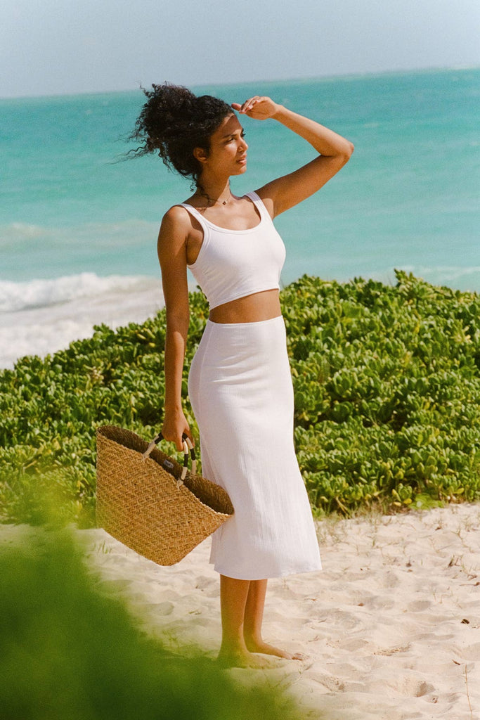 The sleek, white organic skirt that makes getting dressed a breeze.