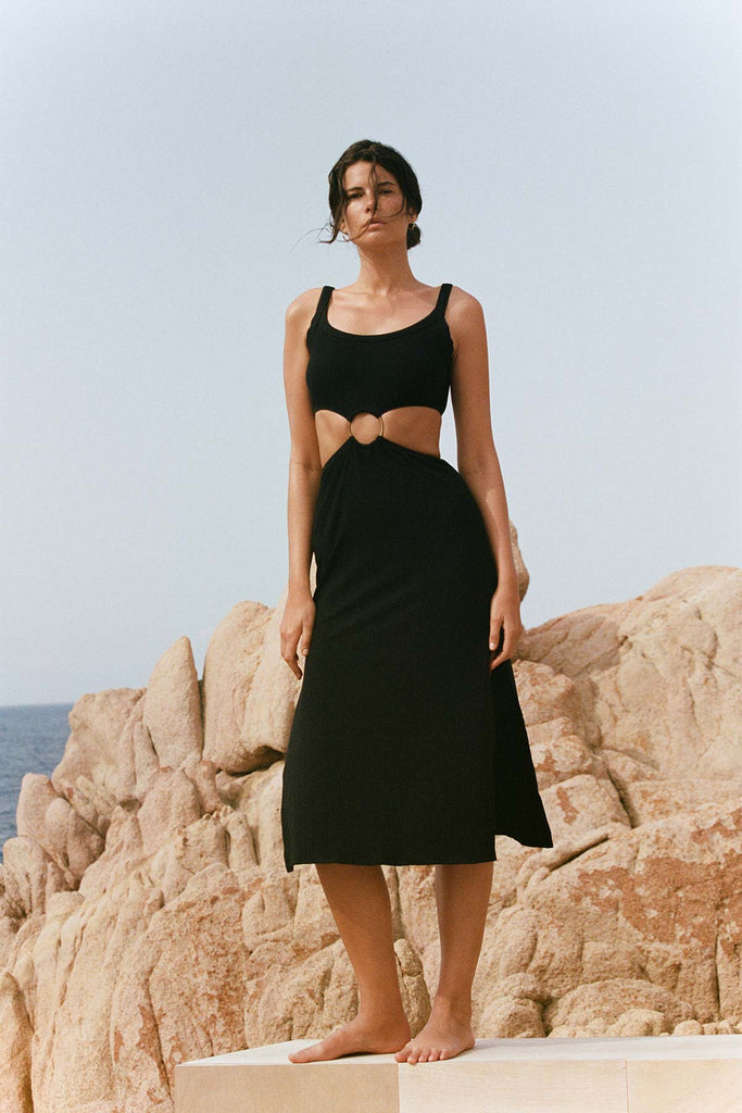 Designed with the coolest of cutouts and a chic gold ring detail, the Icon Cutout Dress will take you from pool lounging to dinner date without skipping a beat.