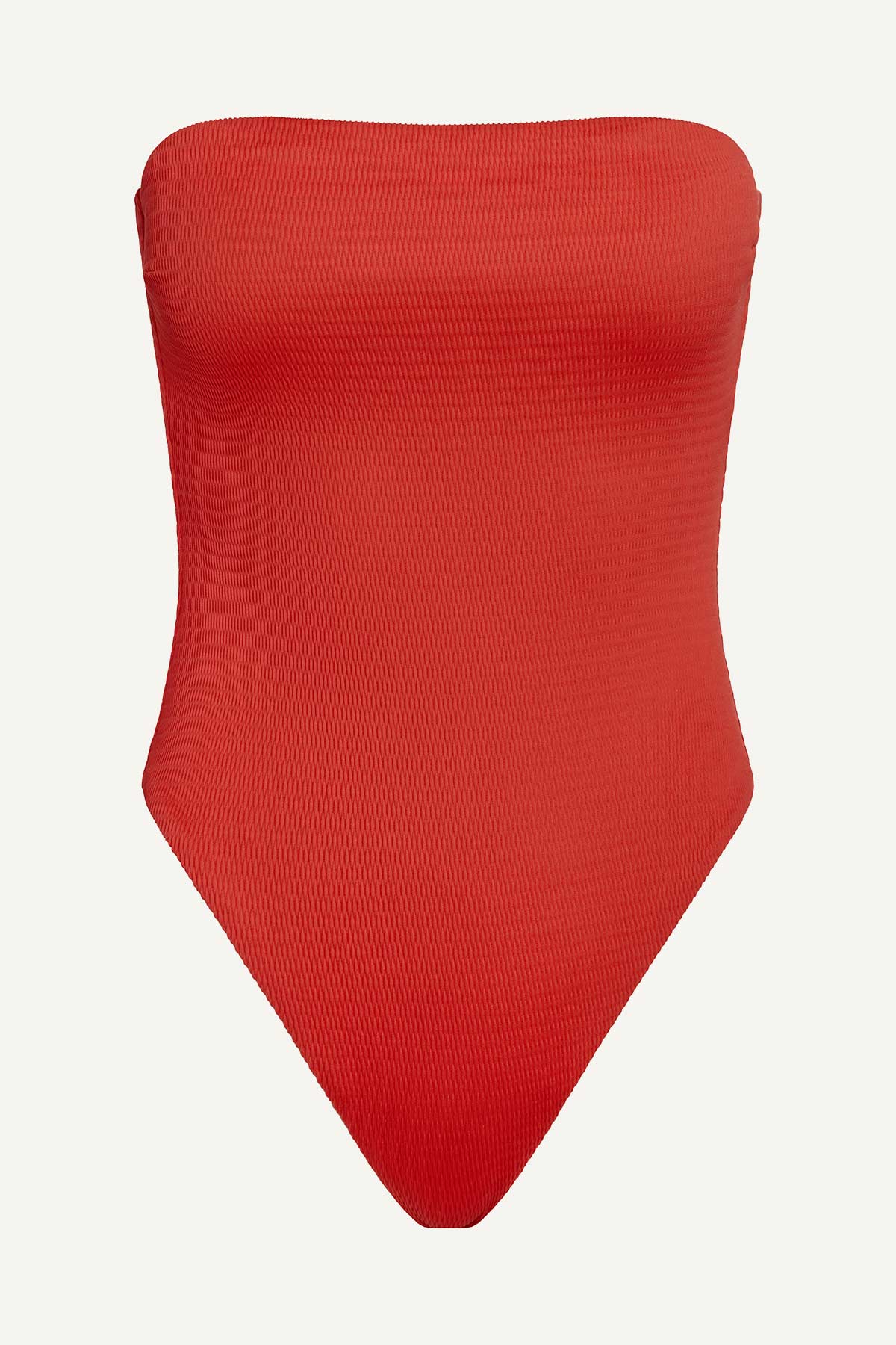 This is a strapless bandeau one-piece to slip into for poolside afternoons. Pull a pair of breezy linen shorts or trousers on and you're set for cocktail hour.